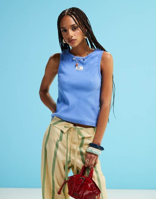 LAAGAM embroidered logo tank top in blue