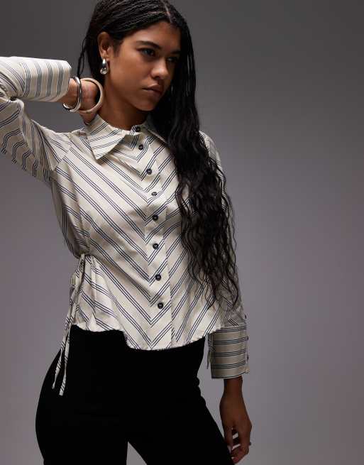 LAAGAM opera poplin fitted shirt with side ties in black and white stripe