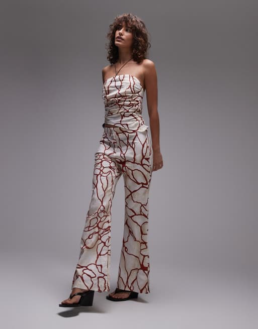 LAAGAM panot marble bandeau top and linen trousers with red abstract print co-ord