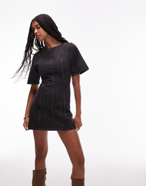 LAAGAM rosette a-line contrast seam mini dress in grey