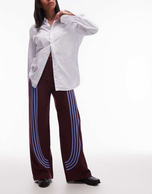 LAAGAM zion midrise straight leg trackpants with curved contrast piping in burgundy