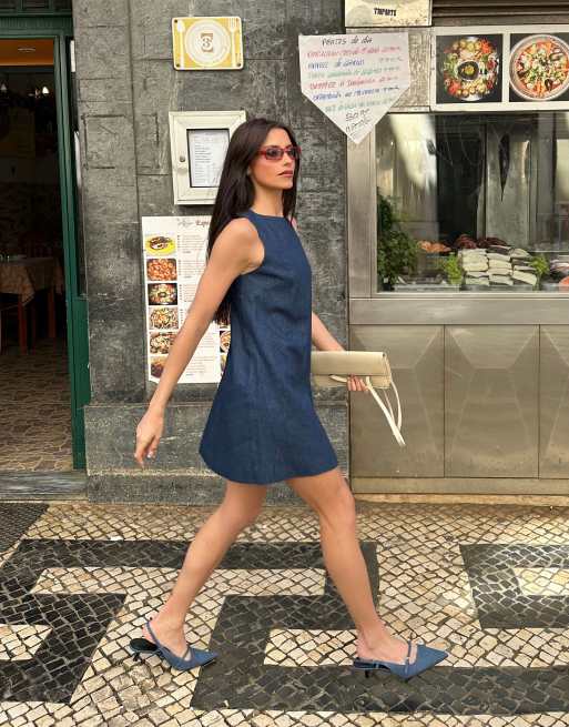 Labelrail x Barbara Ines back detail denim mini shift dress in indIgo blue