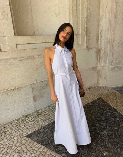 Labelrail x Barbara Ines button through striped midaxi sleeveless shirt dress in grey