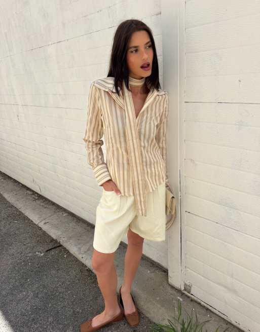 Labelrail x Barbara Ines fitted scarf detail striped shirt in taupe
