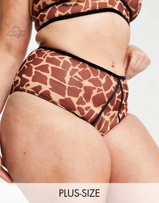 Labelrail x Francesca Perks giraffe print high-waist mesh briefs in rust co-ord