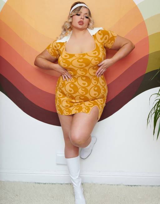 Labelrail x Francesca Perks mini dress with collar in yin and yang knit