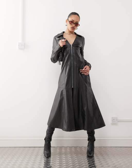 Labelrail x Jennifer McKing matrix faux leather dress coat in black