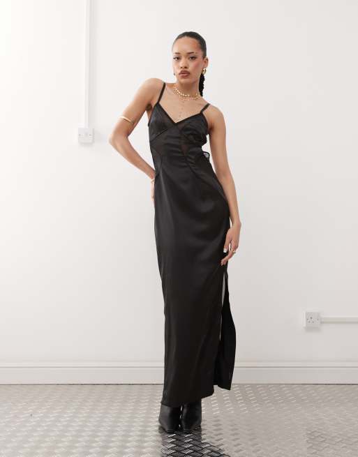 Labelrail x Jennifer McKing satin mesh cut-out maxi dress in black