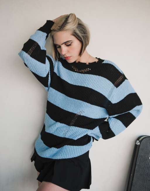 Labelrail x Julia Cumming grunge stripe oversized knit in blue and black