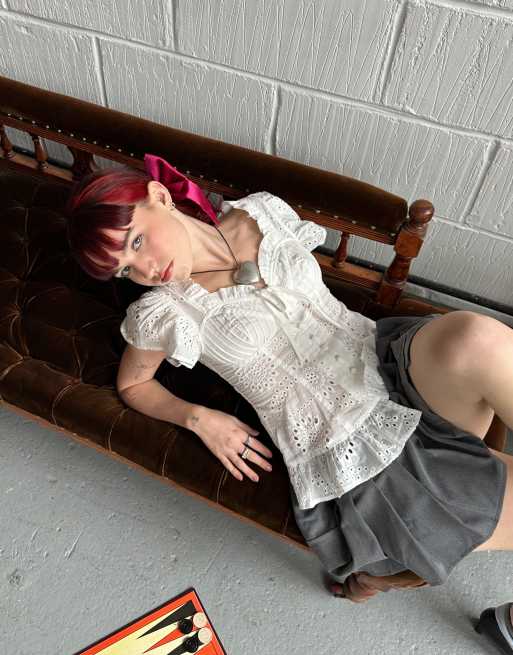 Labelrail x Lara Adkins broderie anglaise ruffle sleeve blouse in white