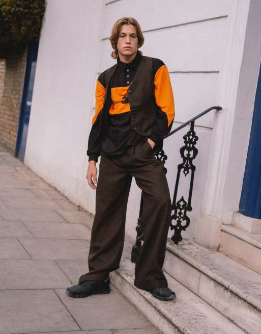 Labelrail x Notion unisex herringbone tweed wide leg trousers in brown