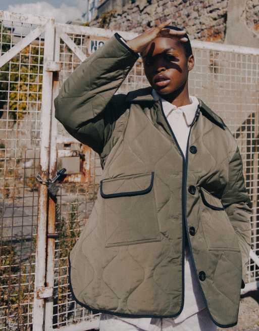 Labelrail x Notion unisex padded detachable sleeve swing jacket in khaki