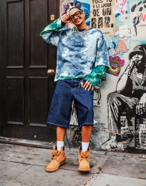 Labelrail x OliBrom baggy double layer t-shirt in contrast blue green tie dye