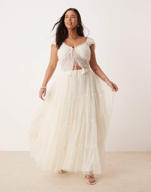 Lace & Beads Plus tiered ruffle maxi skirt in ivory