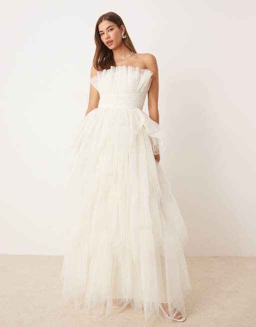 Lace & Beads bandeau layered maxi dress in ivory