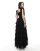 Lace & Beads Bridesmaid tulle tiered bow shoulder detail maxi dress in black