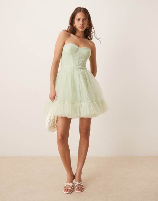 Lace & Beads corset overlay tulle mini dress in pistachio green