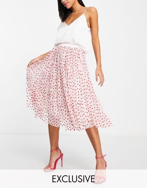 Lace & Beads exclusive tulle midi skirt in blush micro heart print