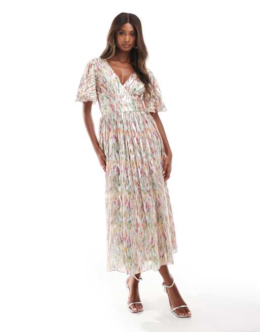 Lace & Beads flutter sleeve midaxi dress in floral