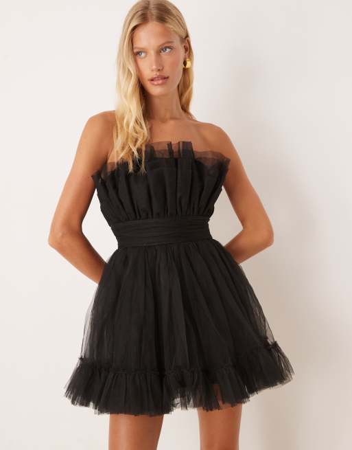 Lace & Beads tulle bandeau mini dress in black