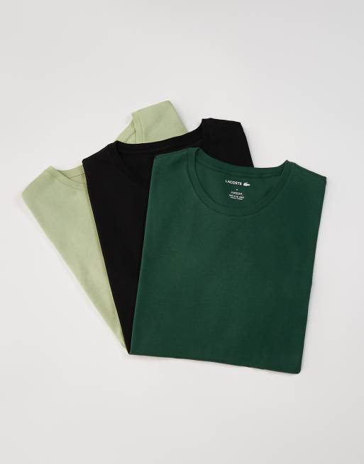 Lacoste 3 pack loungewear t-shirts in black green & light green