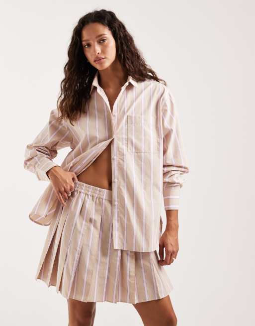 Lacoste co-ord poplin stripe skirt in pink & baby blue