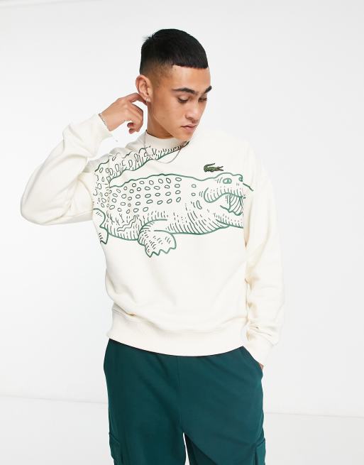 Lacoste large croc loose fit sweatshirt in off white