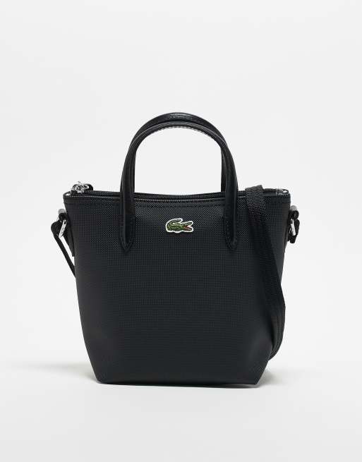 Lacoste leather cross body bag with top handle in black