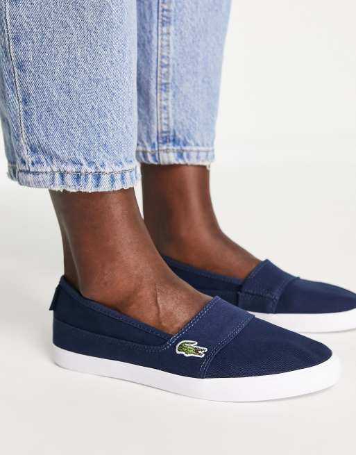 - Launching its first tennis shoe in 1985, Lacoste brings its iconic crocodile emblem to a footwear collection of canvas plimsolls and slip on pumps. Lacoste's authentic sportswear roots fuse fashion with functionality as crisp whites and colour-pop finishes give a contemporary twist on timeless styling. Scroll the Lacoste at ASOS edit to shop clothing, shoes and accessories from the brand, alongside a selection of its signature fragrances.