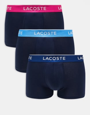 Lacoste pack of 3 contrast stitch trunks in navy