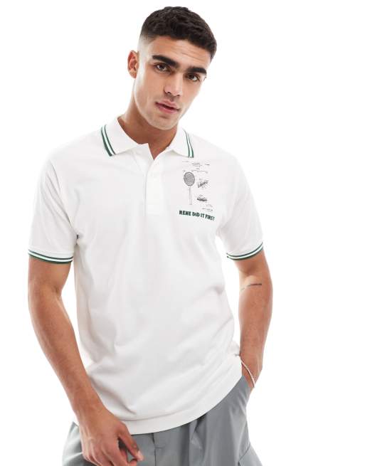 Lacoste pique tennis graphic polo shirt in white