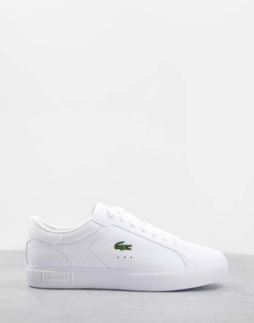 Lacoste powercourt tumbled leather trainers in triple white