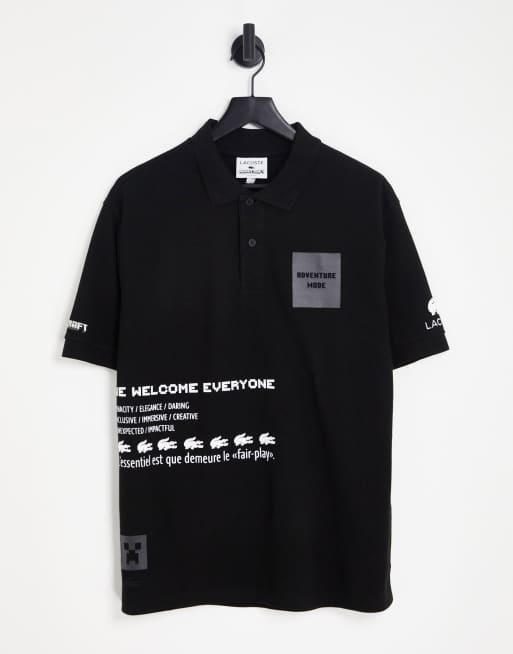 Lacoste x Minecraft back print polo shirt in black