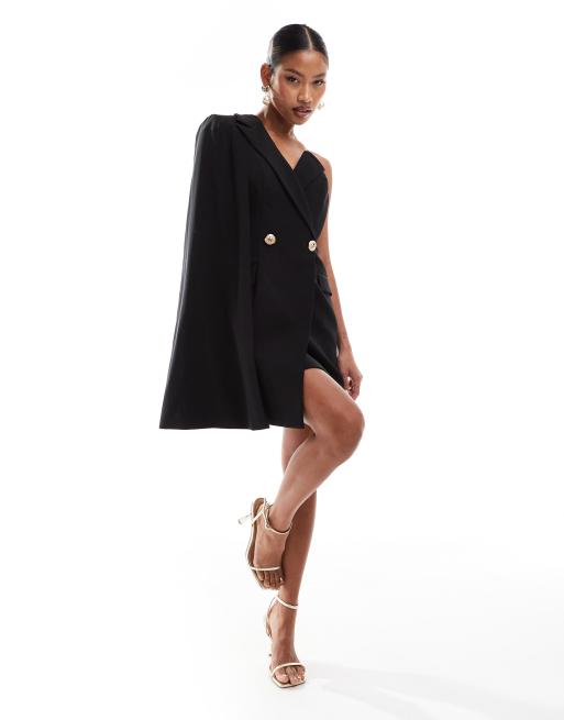 Lavish Alice one shoulder cape blazer dress in black