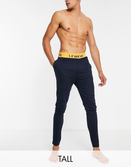 Le Breve Tall lounge co-ord cuffed lounge pants in navy with yellow band