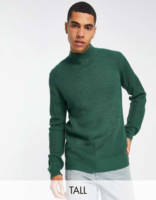 Le Breve Tall ribbed turtle neck jumper in dark green