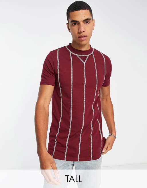 Le Breve Tall verticle stitch t-shirt in burgundy