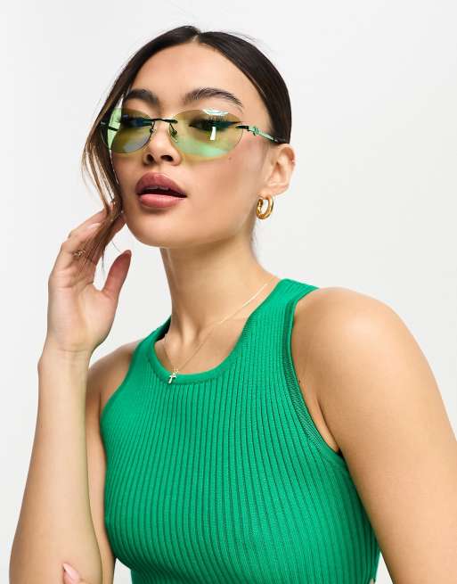 Le Specs slinky oval sunglasses in green chrome