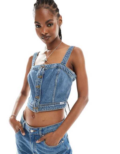 Lee button front denim corset top in dark wash