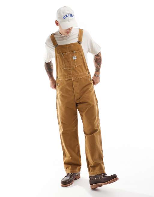 Lee unisex workwear relaxed fit canvas dungarees in tan