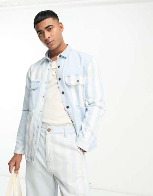 Lee workwear mixed stripe denim relaxed fit overshirt in light wash CO-ORD