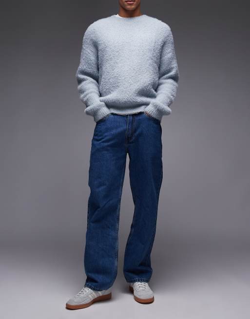 - Non-stretch denim: mid-blue wash