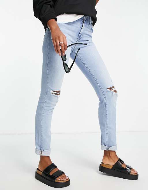 Levi's 724 high rise ripped straight jean in light wash
