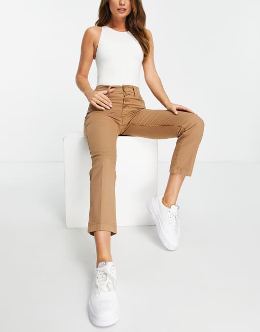 Levi's 724 high rise straight leg crop utility jeans in soft canvas toasted coconut