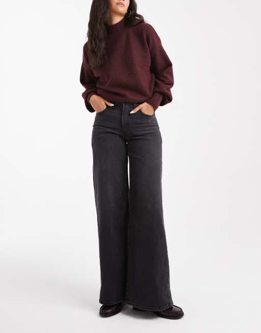Levi's 728 high rise stretch wide leg jeans in washed black