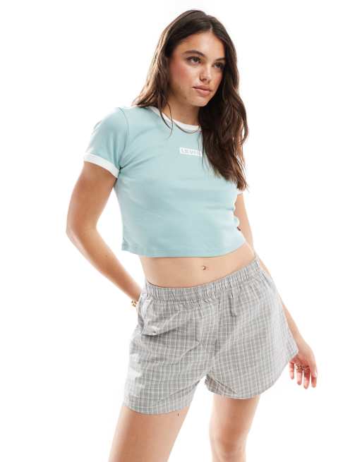 Levi's box tab logo mini ringer t-shirt in mid blue