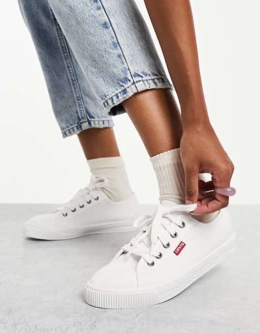 Levi's canvas shoe with red tab in white