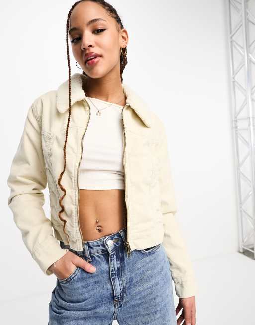 Levi's Cropped sherpa trucker jacket in cream with fur collar