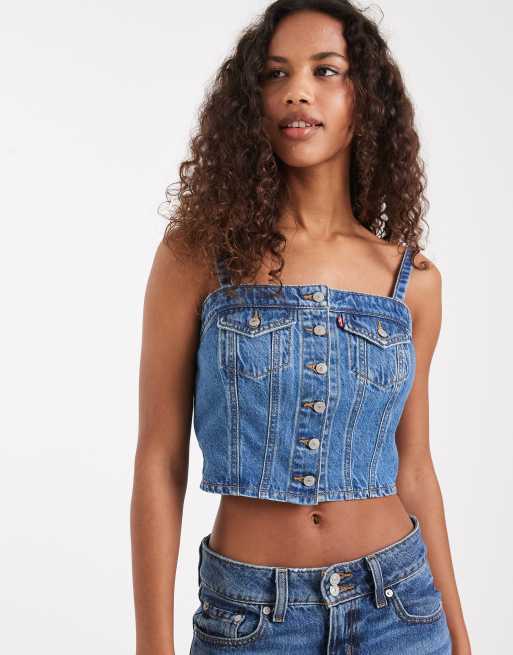 Levi's denim corset with front pockets in mid blue