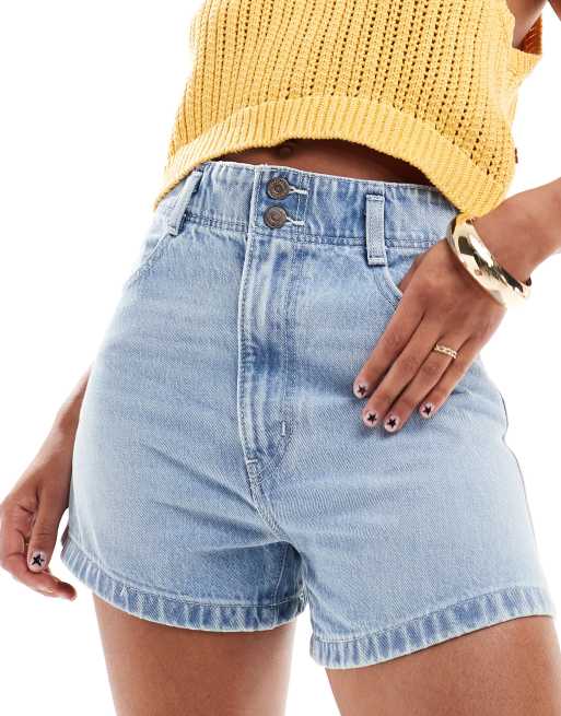 Levi's high waist mom contrast stitch denim shorts in light blue